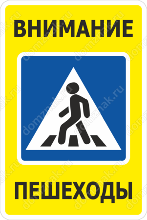 Чем раньше водитель заметит пешеходный переход, тем своевременнее он успеет затормозить, чтобы пропустить людей. Мы знаем, насколько важно заблаговременно предупредить автомобилиста о переходах, и предлагаем вам купить стандартные яркие дорожные знаки «Внимание пешеходы» на жёлтом фоне.