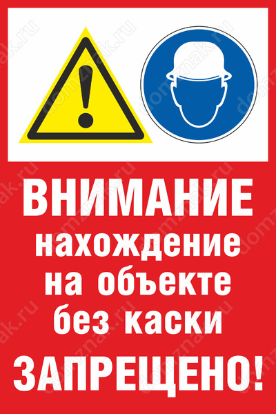 Табличка «Внимание! Нахождение на объекте без каски запрещено!»
