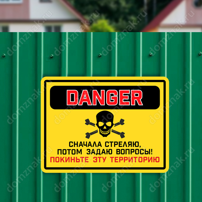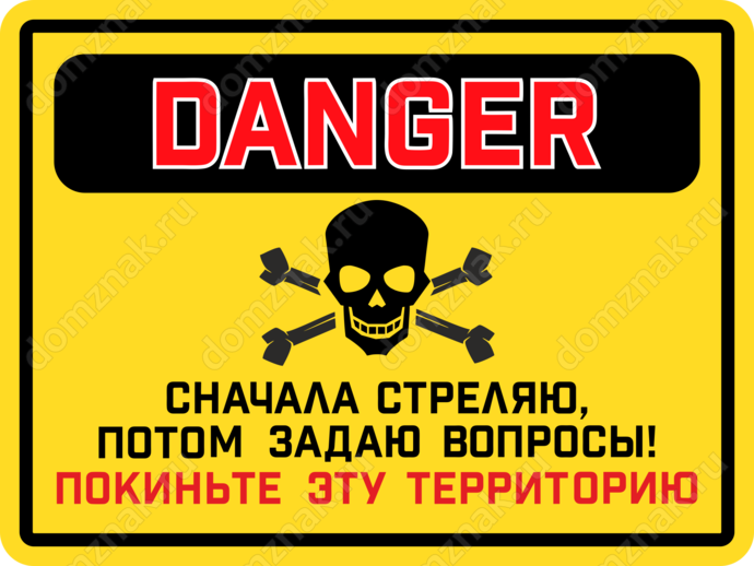 Табличка «Сначала стреляю, потом задаю вопросы! Покиньте эту территорию»