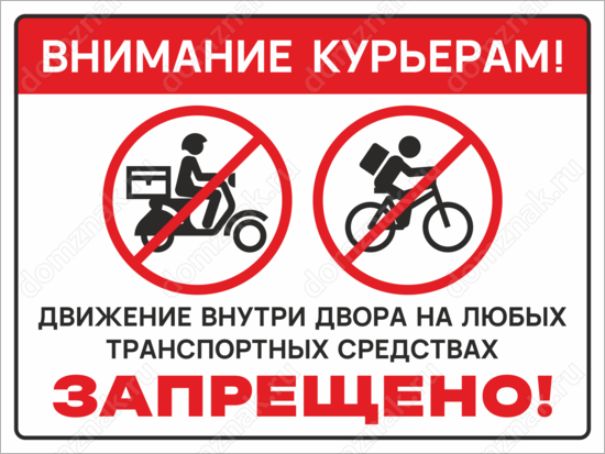Табличка «Внимание курьерам! Движение внутри двора запрещено»