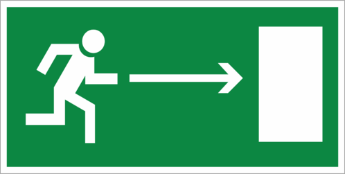 Эвакуационный знак «Направление к эвакуационному выходу направо» (код E03), устанавливается на стенах помещений для указания направления движения к эвакуационному выходу.